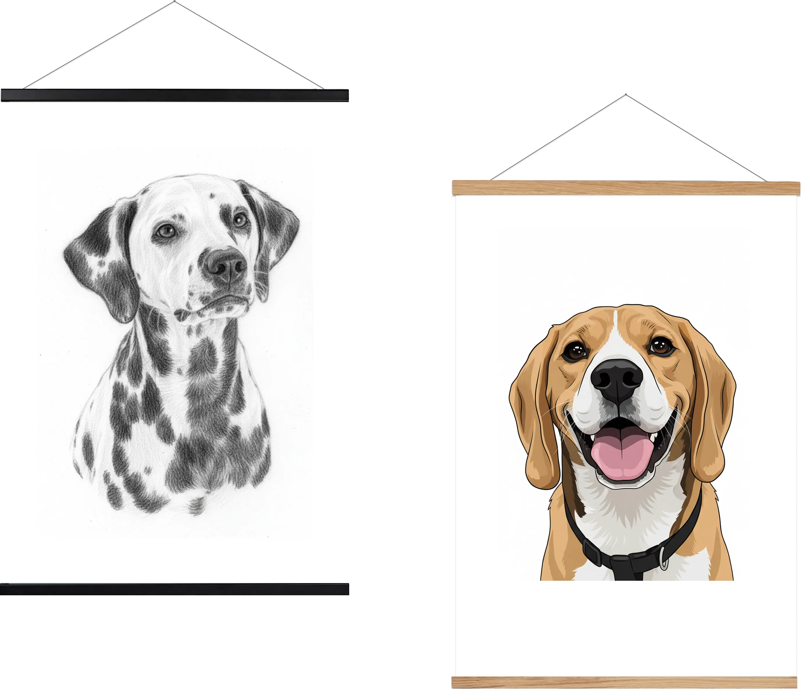 Husdjursporträtt = glädje! Därför tycker vi det ska vara snabbt, enkelt och kul att förvandla foton på husdjur till fina och stilrena porträtt.